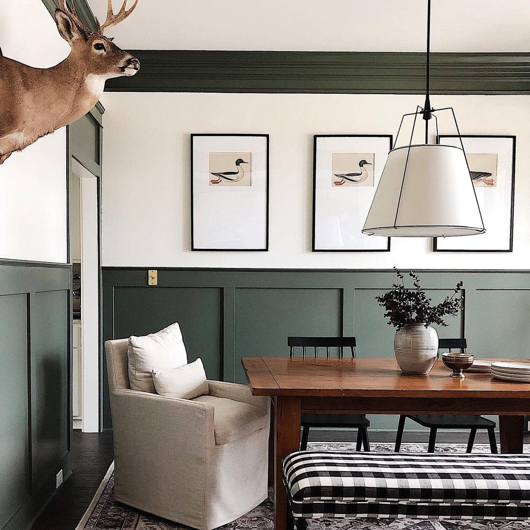 Sometimes something unexpected can bring warmth and conversation to a space. This classic dining room design by @graceinmagnolias uses the iridescent green and taupe colors of Duck, Duck, Goose to playfully compliment the room.